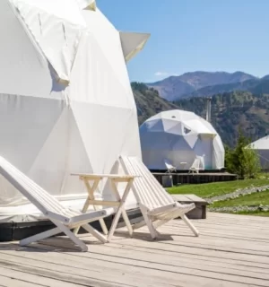 Мы предлагаем купольные сферы, которые представляют собой комфортабельные жилищные модули с полноценным обслуживанием. Эти сферы не являются капитальными строениями и органично вписываются в природные ландшафты. Каждая из них оснащена душевой и уборной комнатой, а также необходимой мебелью.