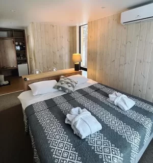 Отельный комплекс Тайгара в Шерегеше - это не просто место для отдыха, а небольшой удивительный мир, где происходят настоящие чудеса. Расположенный в живописном лесу сектора Е, он всего в пяти минутах ходьбы от активной зоны курорта и предлагает уединение в собственном доме в тишине леса. Отель расположен в идеальном месте, где сочетается спокойная природа в окружении активной энергии курорта и расслабляющей уединенной атмосферы глэмпинга.