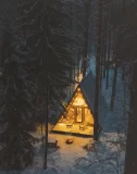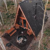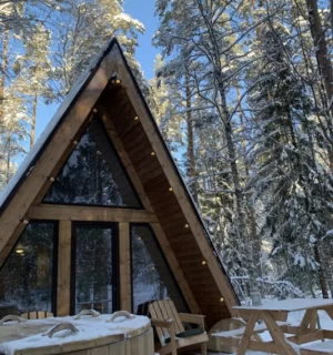 На расстоянии 70 км от Санкт-Петербурга расположены 12 домиков, которые обеспечивают панорамный вид на хвойный лес. Внутри домиков очень уютно и комфортно благодаря наличию всего необходимого для проживания: двуспальной кровати на втором этаже, мягкому дивану, оборудованной кухне, туалету и душу с горячей водой и полотенцами. В то же время на террасе пяти домиков можно наслаждаться дровяной горячей купелью.
