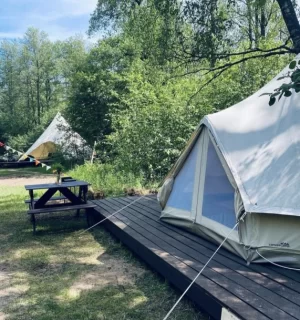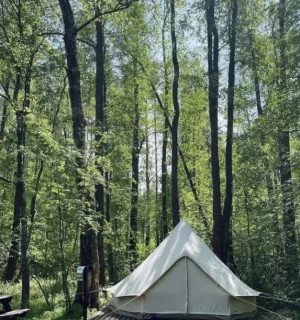 Летом здесь есть возможность жить в шатрах, которые расположены на берегу озера Вуокса. Внутри шатров есть все необходимое для комфортного проживания: двуспальная кровать, белоснежное белье, обогреватель и прочее. Удобные туалет и душ с теплой водой расположены на территории лагеря.