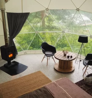 Также на территории глэмпинга Hills and Huts в Санкт-Петербурге вы сможете расслабиться у камина с настольными играми и насладиться просмотром фильмов на проекторе.