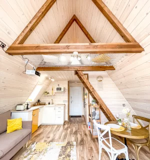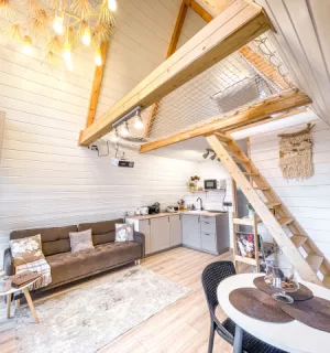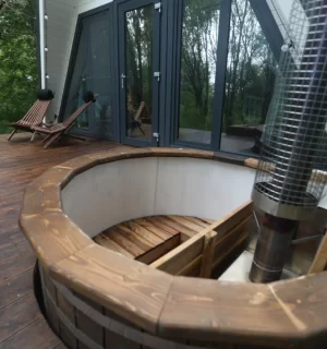 Гости могут провести свои выходные на природе, наслаждаясь множеством развлечений. Они могут, например, попариться в баньке и окунуться в прохладную воду реки, а также расслабиться в горячей купели на террасе своего домика. Для любителей активного отдыха здесь предусмотрено множество развлечений: каяки, сапборды, лодки и велосипеды - все это можно использовать бесплатно.