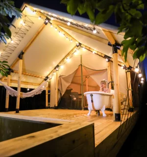 Глэмпинг А у реки - это небольшой семейный проект, в котором хозяева вкладывают свою душу в каждую деталь. Очаровательные треугольные дома и сафари-тенты с горячими купелями создают неповторимую атмосферу, в которой каждый гость по-настоящему отдыхает душой и телом. Не упустите возможность насладиться удивительной природой и провести незабываемые выходные на природе в Подмосковье.
