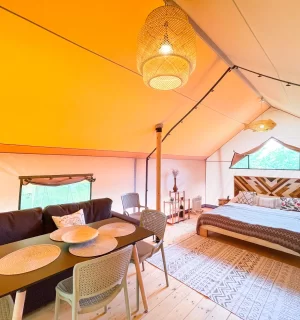 Глэмпинг А у реки идеально подходит для отдыха всей семьей, друзьями или даже для тех, кто хочет провести время в одиночестве. Гости могут погрузиться в идеальный отдых на природе, наслаждаясь максимальным комфортом. Отель находится всего в 130 км от Москвы, так что можно быстро и легко добраться до места назначения.