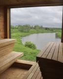 Особенностью нашего отеля является баня с панорамными окнами и горячим чаном, откуда открывается великолепный вид на реку и захватывающие закаты.